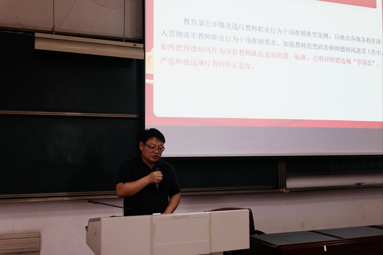 为切实筑牢教师师德师风防线,学院开展师德师风警示教育。会上通报了教育部公开曝光的违反《新时代高校教师职业行为十项准则》典型案例,明确“师德师风是评价教师队伍素质的第一标准”,亮明学院对师德违规行为“零容忍”的坚定态度。