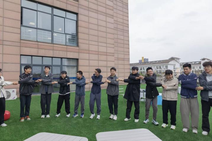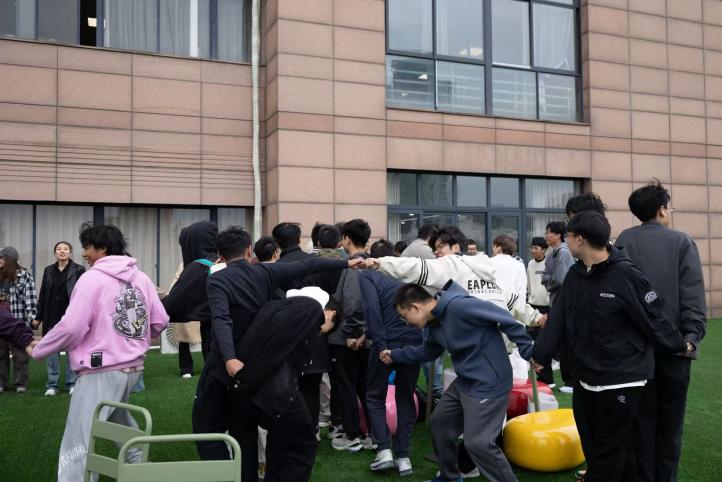 最后,在王荔老师的引导下开展了以“初识破冰·友你相伴”为主题的互动环节。同学们手牵手、心连心,彼此协作、默契解结,笑声与掌声交织,现场气氛温馨而热烈。这一环节不仅拉近了彼此距离,也寓意着“成长之友”们将在未来的学习和生活中与新生携手并肩、同心同行。